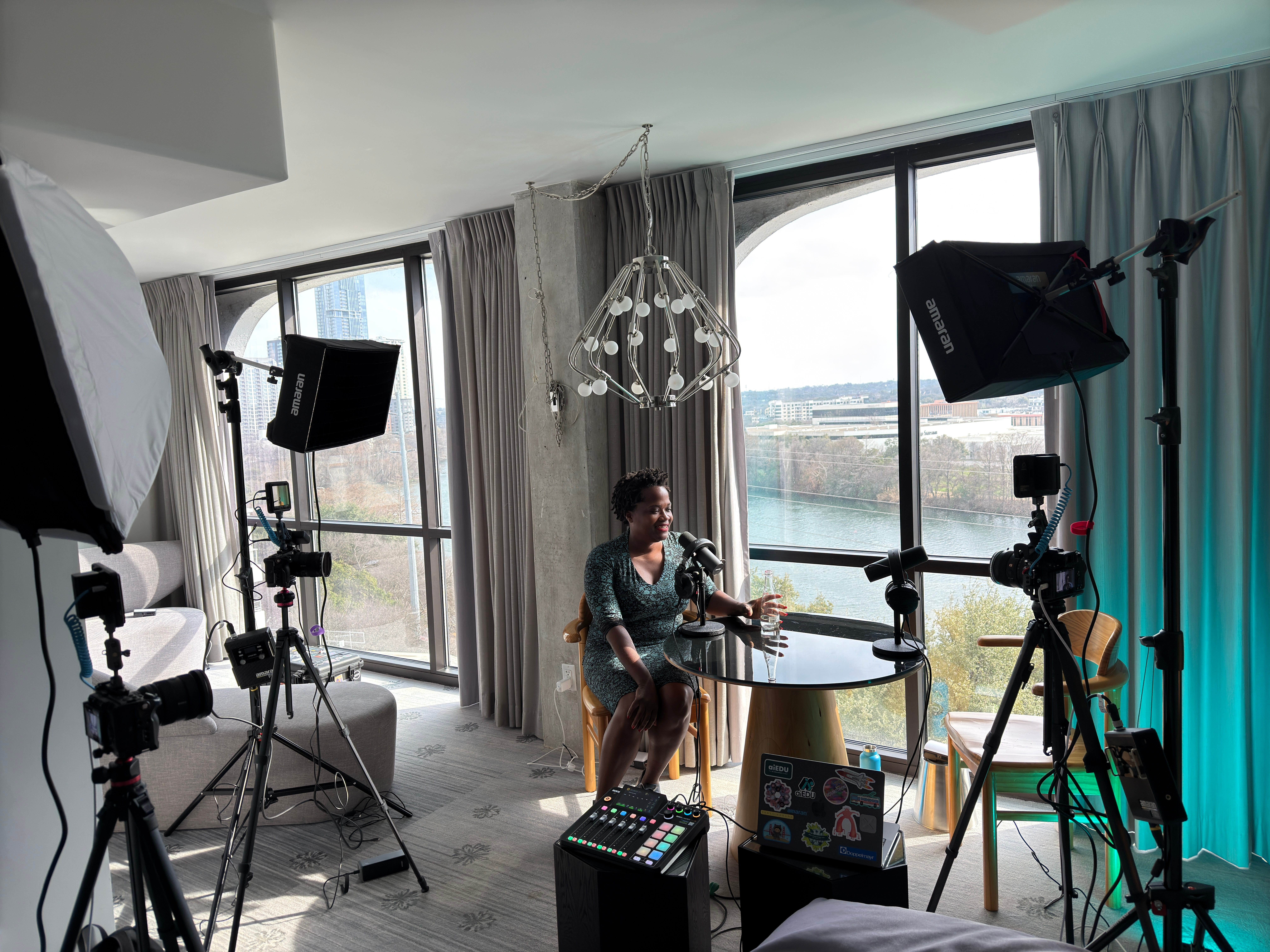 After lots of trial and error, we landed on a studio setup that worked. My interview with Shawna Young (pictured below) is probably the best out of our first dozen or so shows.