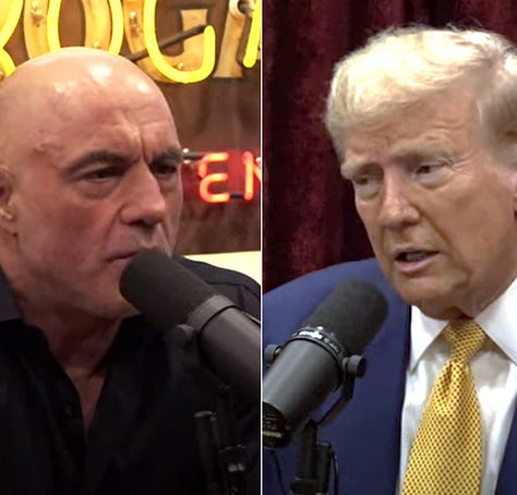 Trump made the rounds on shows hosted by some of the most popular YouTube podcasters, a strategy that yielded massive viewership numbers far exceeding those of traditional broadcast TV. His appearance on The Joe Rogan Experience shattered records, reaching 45 million views within a few hours. His other appearances also garnered tens of millions of views, including interviews with Adin Ross (2M+ views), Andrew Schulz (9M+ views), The Nelk Boys (5M+ views), Logan Paul (8M+ views), Lex Fridman (5M+ views), Patrick Bet-David (4M+ views), Shawn Ryan (2M+ views), and Theo Von (3M+views).